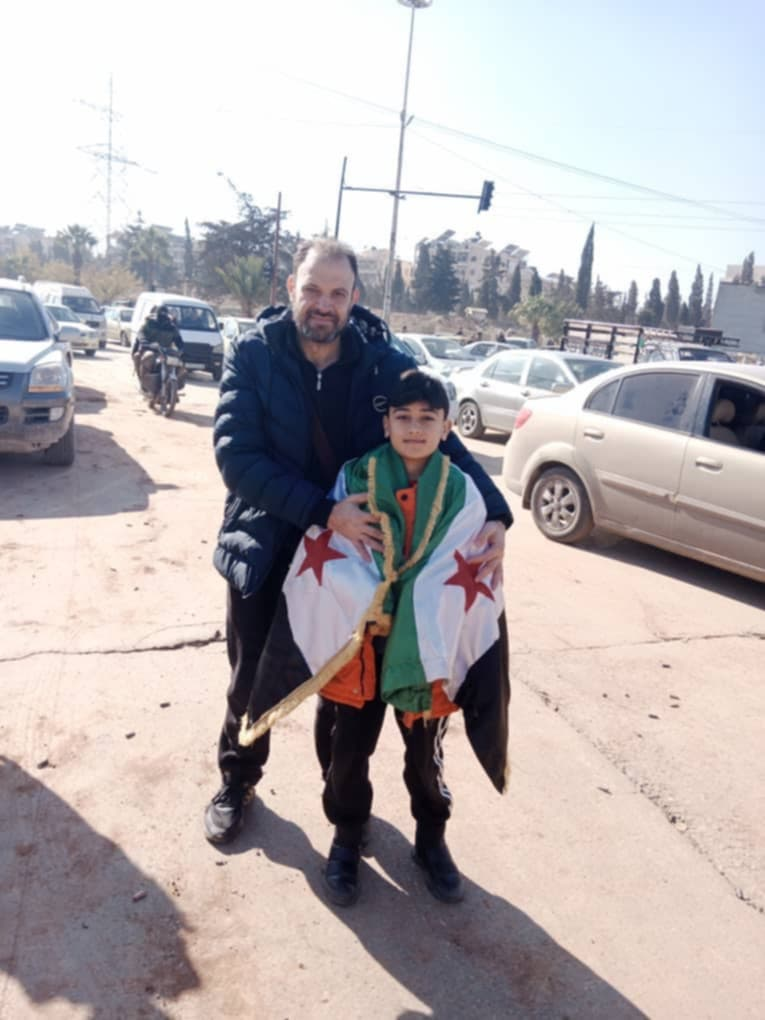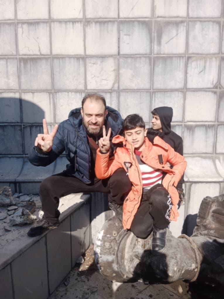 The death of Wael Shaban was grieved upon in the Facebook post by Basil Najib who wrote, “Wael did not enjoy what he celebrated in a video that is perhaps the most important video he has filmed in his life and with the words God is Great God is Great after he wrote: An indescribable feeling and he told me (the world does not believe it). {..}The regime’s aircraft bombed al-Basel roundabout, which led to the death of many, including Wael, may God have mercy on him and inspire his family with patience.” The video mentioned by Basil showed the toppling of the statue of the Syrian dictator Bashar Assad amidst the joyful screams of the protesters who shouted “Allahu Akbar!”In one of the images posted, Wael is seen with his son who was sitting on the granite head of the monument, and both show the victory sign. Sadly, soon after that celebration, Wael was killed in the airstrike on Aleppo. He was a middle-aged man with light brown hair and a thick brown beard. He was wearing a black jacket.