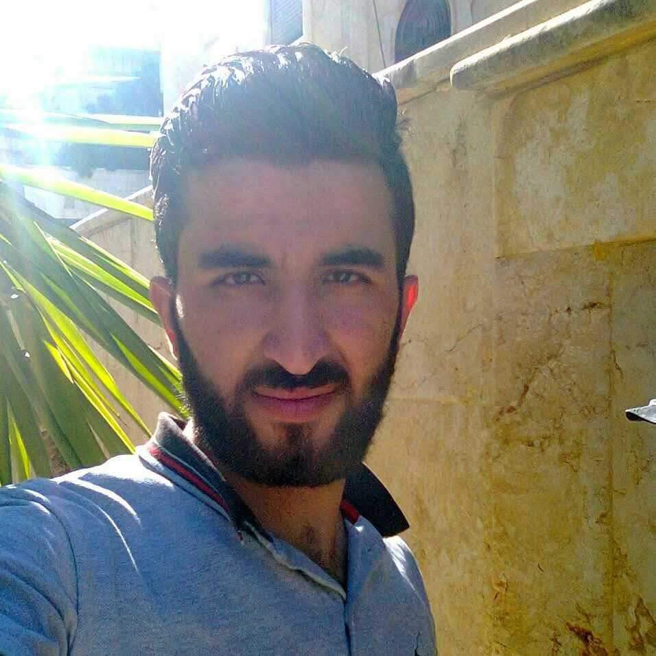 The death of Abdul Karim Dabbit was announced in a Facebook post by the College of Science and Economics, where he used to study. Facebook user Mohammad Mohammad grieved the death of Abdul Karim, noting that he had been his colleague in the mathematics department. Both sources shared the image of the late Abdul Karim, a young man with dark hair and a dark trimmed beard wearing a blue T-shirt and standing outside near a palm.