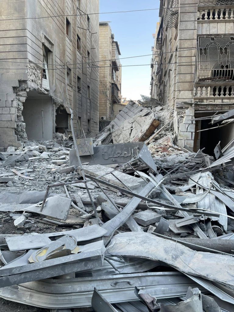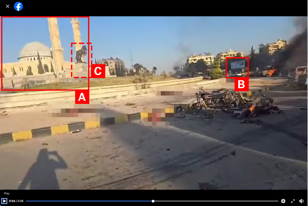 Reports of the incident mention multiple strikes in the New Aleppo neighbourhood (حي حلب الجديدة) in the city of Aleppo (حلب). Analysing audio-visual material from sources, we have narrowed these locations down to the following exact coordinates: Al-Basel Roundabout (دوار الباسل) at 36.199842, 37.110844; and the residential area in the vicinity of Al-Basel Roundabout at 36.199501, 37.113702. Due to limited information, we were unable to determine in which of the two locations civilian harm occurred.
