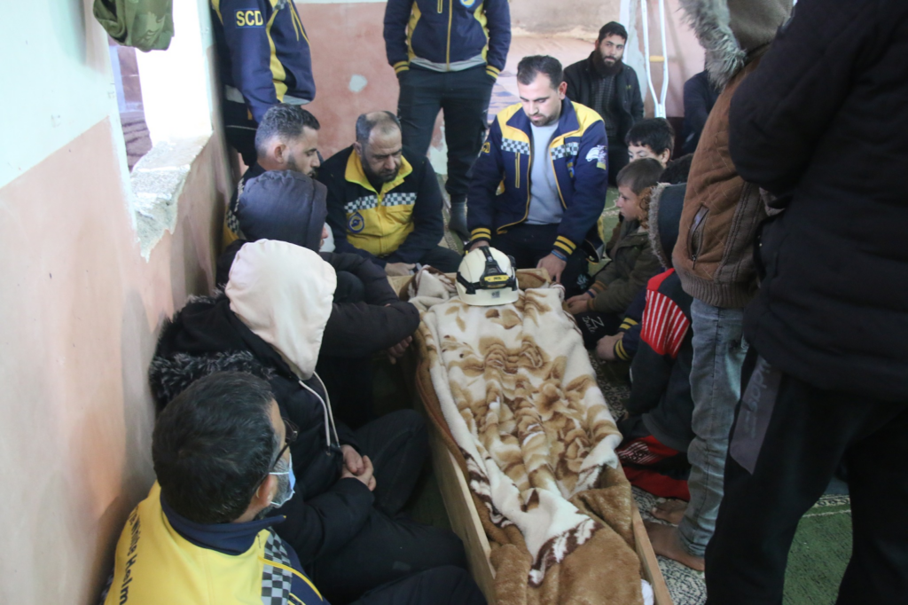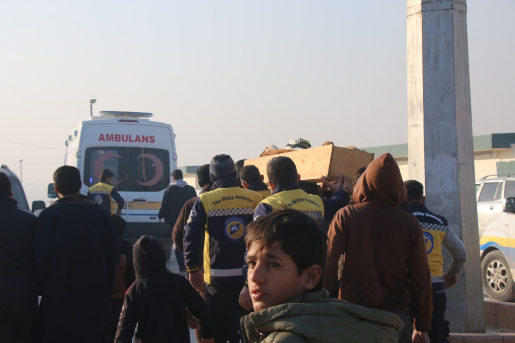 The White Helmets confirmed in a Facebook post that he was volunteering when he was killed by the Russian and/or Syrian regime forces airstrike, and included photos of his wake where his body is being carried to its final resting place. The post reads, “They carry him on their shoulders, escorting him to his final resting place, bidding him farewell without him hearing their words. Farewell and burial of the body of volunteer “Suleiman Muhammad Suleiman Al-Hariri,” who was martyred while carrying out humanitarian missions following airstrikes by regime and Russian aircraft. Our condolences to his family, and we ask God to have mercy on him and forgive him.”