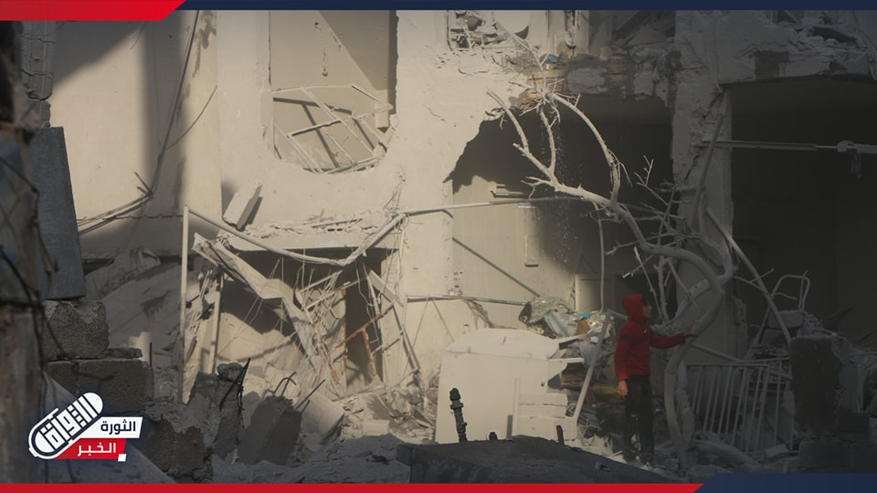 Images published by “Revolution News” on Facebook show damage sustained on the first floor of a building and by a nearby vehicle, all heavily covered in dust from the rubble. Enab Baladi included a video of the aftermath of airstrikes which hit “the southern part of the stadium in Hama.” – in the video, a journalist can be seen standing in front of the same building, and widespread damage is more visible, including multiple other destroyed vehicles.