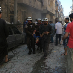 Zamanalwasel News spoke of raids carried out by regime warplanes “on most of the districts of Aleppo”. It continued saying that “warplanes committed a massacre in the neighborhood of “Al-Maghayer”, which killed seven people according to the initial death toll and wounded dozens, including children and the elderly.” The correspondent furthermore explained that “the regime helicopters targeted a neighbourhood with seven gas cylinders.”