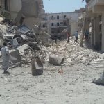 Ammar al-Halabi, an activist, told Syrian News Desk “Russian warplanes carried out two air missile strikes on a four-storey apartment building in the central nieghbourhood, killing six civilians, including a child. Others were taken to a field hospital for treatment.