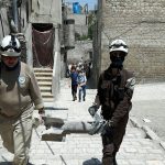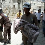 Aleppo White Helmets reported that “a short while ago a missile fell on al Maghayer neighbourhood killing two children and injuring three others including a woman”.