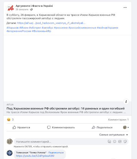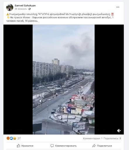 On February 26th 2022, between one and five civilians were killed, including two 42 year old women and three young men, two who were born in 2000 and 2004, were reported killed and 14 others reported wounded when a passenger bus was hit by alleged Russian gunfire in the village of Volokhiv Yar, Kharkiv, Ukraine.