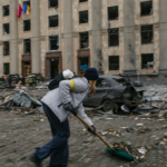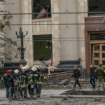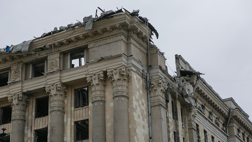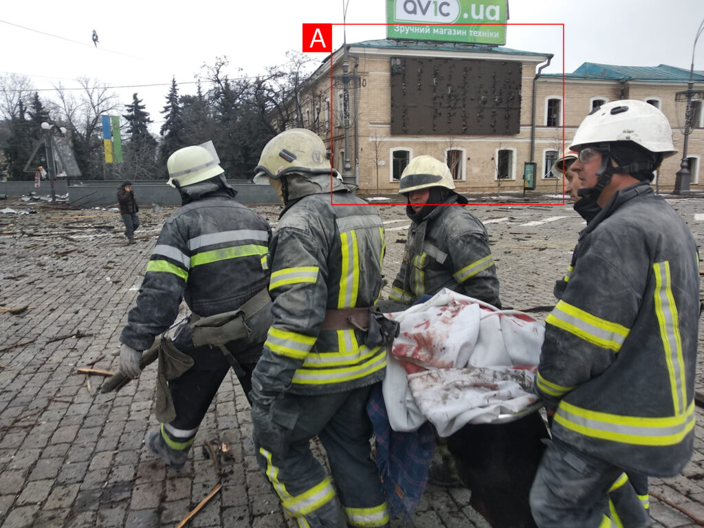 The Kharkiv Human Rights Group reported that at 8:02am, a rocket attack struck the building of the Kharkiv Regional State Administration and Freedom Square, killing 10 people and injuring more than 35 others. At the time of the explosions, there were security forces, military personnel and volunteers in the building. The bombing led to the destruction of a large part of the building, including the chairman’s office, and damage to two buildings of the University of Kharkiv, including knocking out the windows. AP described the damage to the building as blowing out windows, collapsing ceilings, in addition to crushing a nearby car.