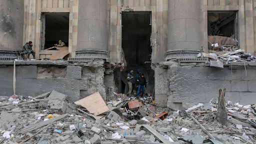 A tweet from @VoicesBelarus reported that the first explosion hit Svoboda Square near the regional administration building and the second rocket hit the building itself. AP added that within the square, the missiles had hit a tent encampment that had been set up to collect aid for the Ukrainian fighters. Ukrinform quoted the Head of the EU Delegation to Ukraine Matti Maasikas who said that the Slovenia consulate was destroyed as “collateral diplomatic damage”