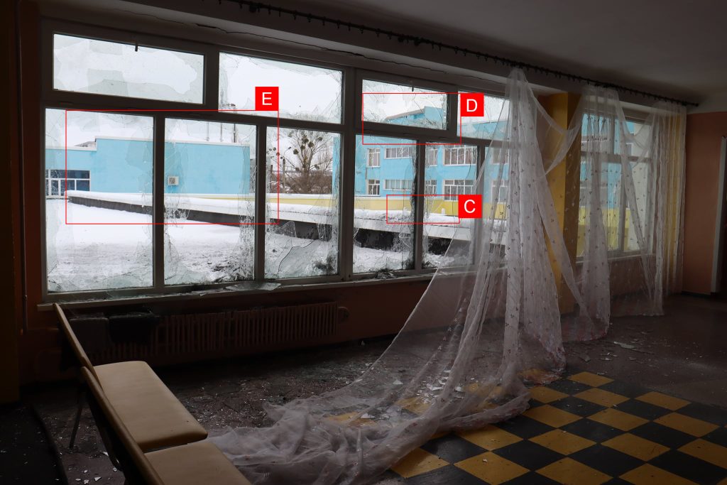 The chairman revealed that one of the 15 injured was a four year old child and also referenced information that one of the three dead was killed on Kashtanova Street. Suspilne quoted his observations that “the roof of the lyceum was damaged, windows were broken and there were traces of shots in the school yard”. The pictures in media sources and his Facebook corroborate this account. The school can be seen with windows broken.