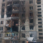 Three civilians, including a child, were injured by alleged Russian shelling of a building at Krasnodarska 177 on March 8, 2022.