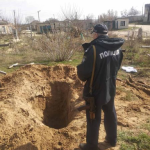 The Police of the Kharkiv region posted on Facebook that “during heavy weapons fire by the Russian military, a 57-year-old woman was near her house and received shrapnel wounds from which she died. Neighbors buried her in the cemetery. People marked the burial place with a plaque with the details of the deceased.” On March 28, 2023 the investigators in the Kharkiv region conducted an examination of the body of the deceased woman and sent it for medical examination.