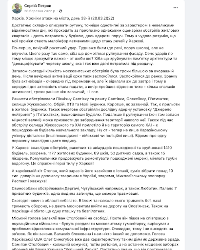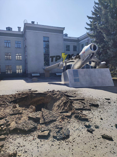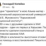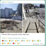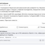 Khai news posted on Telegram that during a shelling of the National Aerospace University, the arena building and DMS-3 were damaged (glass was damaged in some rooms) and a man who was walking near the buildings was injured.