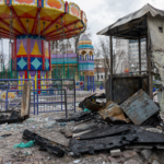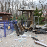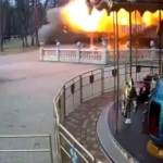 Videos from surveillance cameras published on April 14th and reported on by Glavcom.ua and Ungvar.in.ua, show several rockets fired on the territory of the Gorky Central Park of Culture and Recreation in Kharkiv from Grady (“Hradiv”), resulting in several attractions being destroyed and a fire erupting, which was extinguished by the fire fighters of the State Emergency Service.