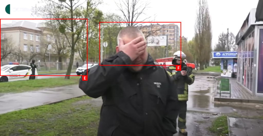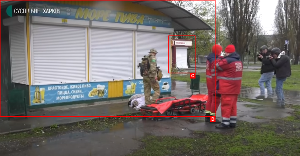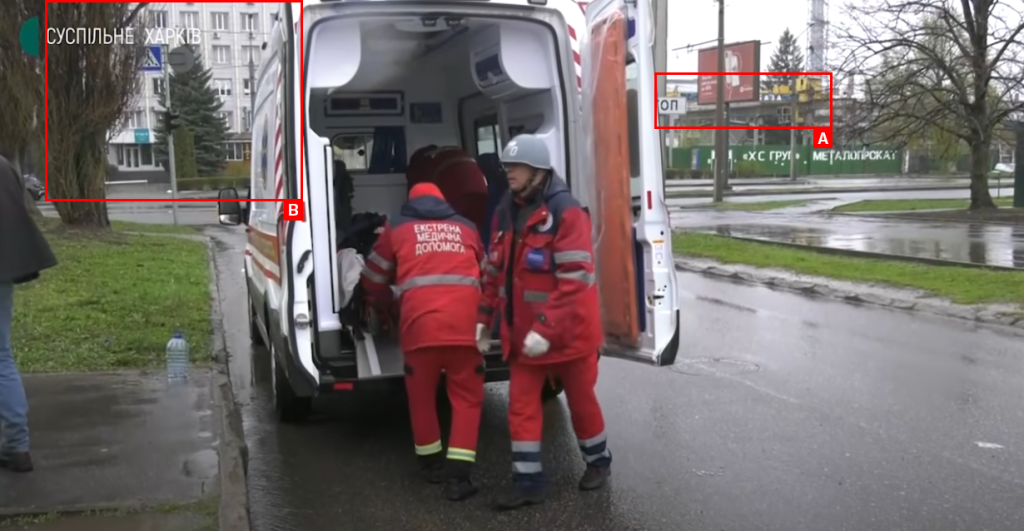 Reports of the incident mention the Osnovianskyi District (Основ’янский район) of the city of Kharkiv (Харків). Analysing audio-visual material from sources, we have narrowed the location down to the following exact coordinates: 49.961461, 36.305721.