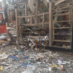 Numerous photos purporting to show the damaged buildings and supermarket accompany many of the posts.