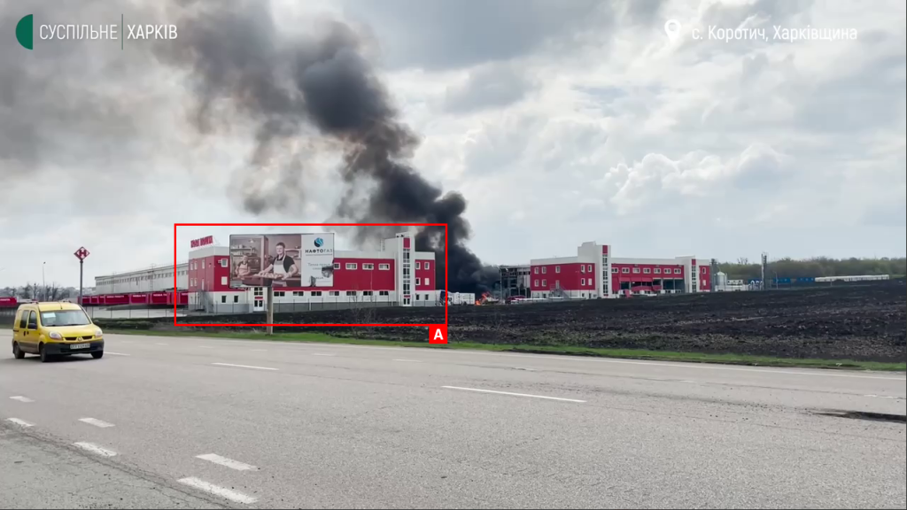 A Telegram post from Trukha Ukraine referred to the location as the New Post terminal in Korotych, along with videos showing a building and vehicles on fire. Ostannipodii News added that the New Post warehouse complex is also called “Khai” and was built in 2020.