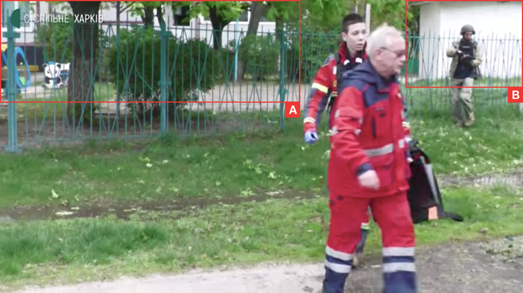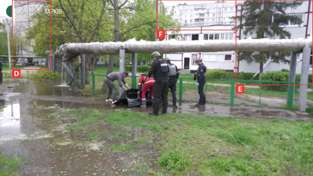 Reports of the incident mention the Saltivka (Салтiвка) neighbourhood of the city of Kharkiv (Харків). Analysing audio-visual material from sources, we have narrowed the location down to the following exact coordinates: 50.020186, 36.327997.