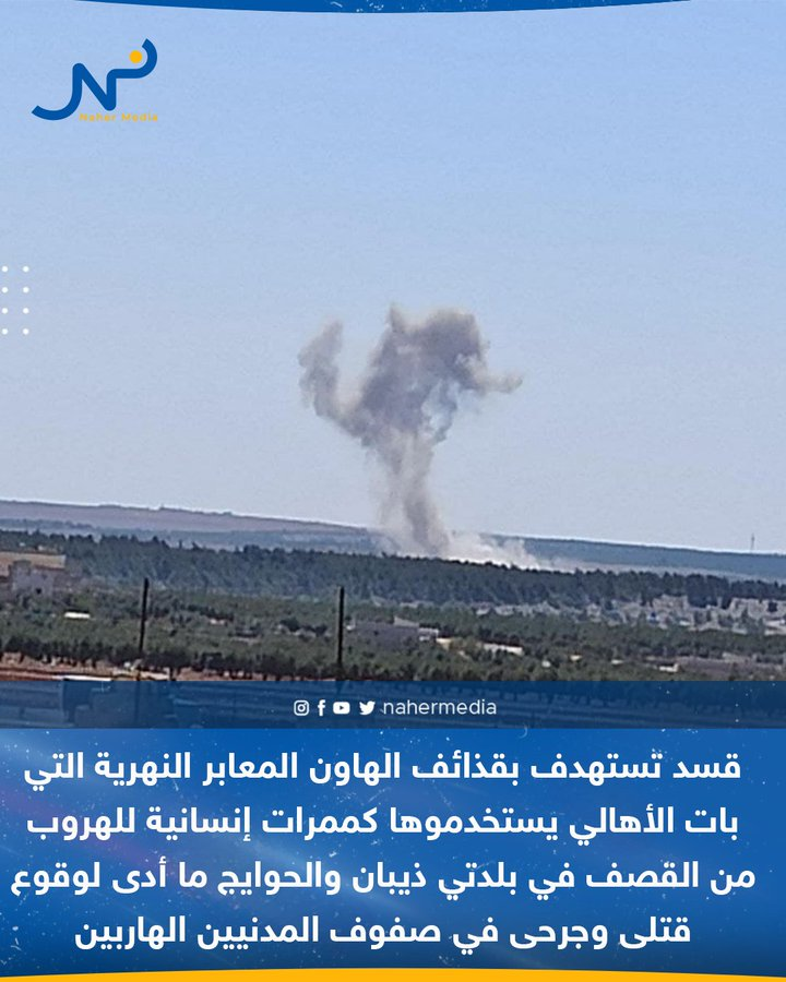 A number of civilians were reportedly killed and injured while escaping from bombings in the towns of Dhiban and Hawaij, in the eastern countryside near Deir Ezzor, when nearby river crossings, that are used as humanitarian corridors, were allegedly struck by mortar shells on Tuesday, September 5th 2023.