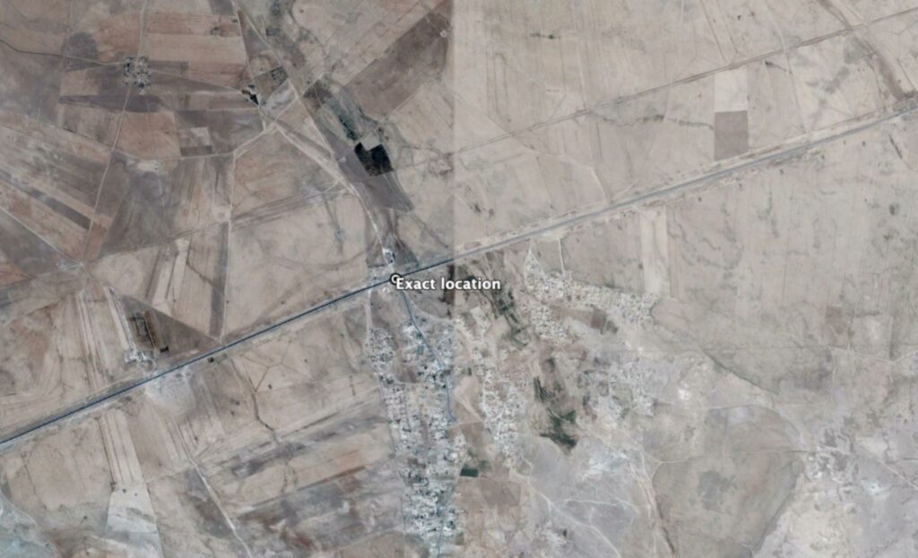 Reports of the incident mention the Tirwaziya (تروازية) checkpoint, located on the M4 highway between Raqqa (الرقة) and Hassakah (الحسكة). Extensive research by Newsy & Bellingcat, and the BBC, show this location to be at these coordinates are: 36.460242, 39.593628.