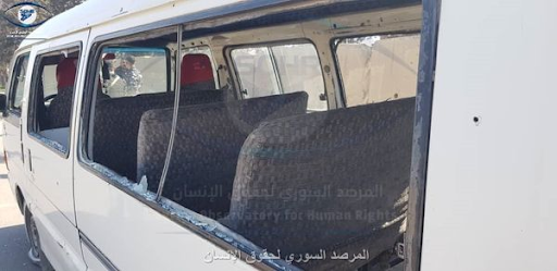 The driver of the car carrying passengers, Lazkin Abed, explained the details of the attack to Hawar News: “We were in the car coming from Amuda towards the city of Qamishlo, and I had 14 passengers, and suddenly the attack happened and a strong sound was issued and the windows of the car were shattered. I did not stop in that moment. I kept [driving] until the tires of the car exploded on my way to Himo. The passengers who were sitting on the left side of the car were more affected than others, as a result of the strong attack, as shrapnel was scattered towards them.”