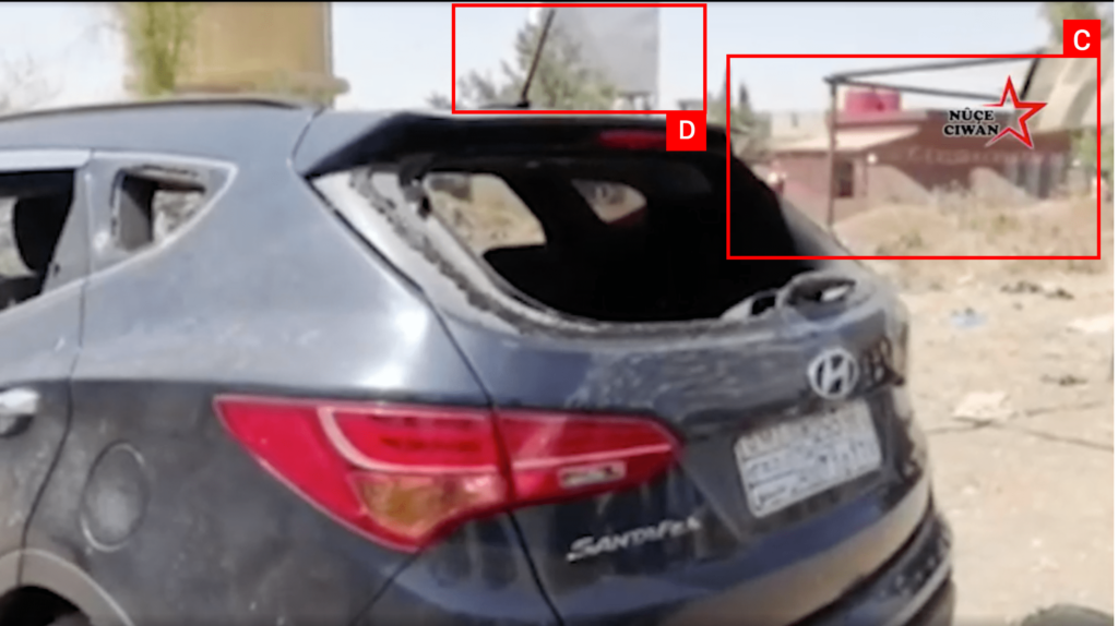 Reports of the incident mention a strike on a fruit and vegetable market in the Maysaloun neighbourhood (ميسلون) of Al-Qamishli (ٱلْقَامِشْلِي). Analysing audio-visual material from sources we have narrowed down the location to these exact coordinates: 37.065754, 41.244520.