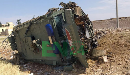 The Syrian Observatory for Human Rights reported that the injured Russians were transported to Afrin hospital and then transferred to another medical facility, though the nature of their injuries are currently unknown; while the Kurdish North Press Agency (NPA) report that 3 were injured in the attack, others such as the British-based Syrian Observatory for Human Rights reported 4 injured. Images of the vehicle’s remains published by Basenews and NPA display the armoured vehicle with ‘MP’ written on the front laid on its side with extensive damage particularly to the front of the vehicle.