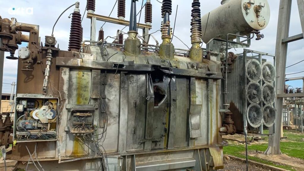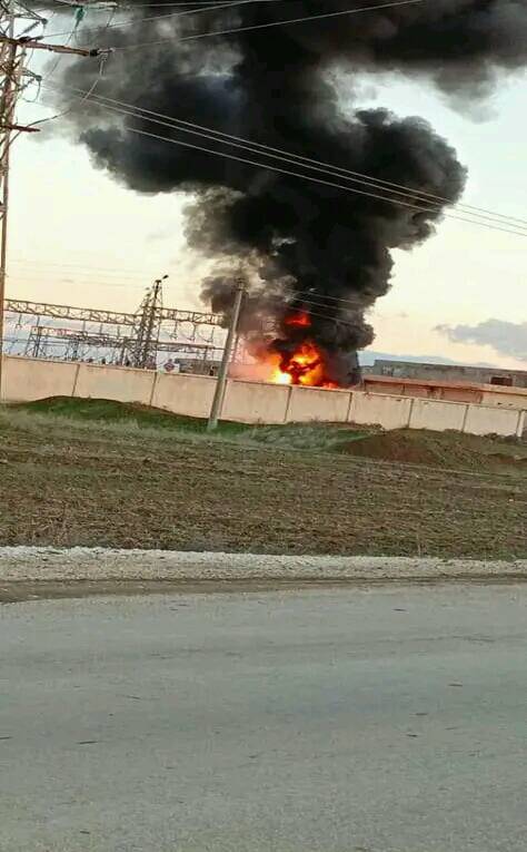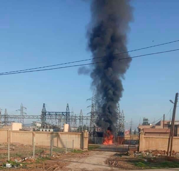 SANA correspondent in Al-Hasakah reported on January 15th that the Al-Darbasiyah electricity transfer station was out of service as a result of the strike. Gathering of people of Hasaka and Syria News Network Facebook accounts shared images of the black smoke rising over the station that had caught on fire and of the damaged transformers. Syria News Network also added an image of the destruction inside the premises of the station.