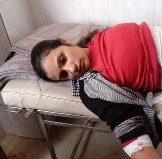 Local sources reported that a 19-year-old girl named Amina Hikmat Muhammad from Sogankeh village was seriously injured in the abdomen as a result of the shrapnel from the artillery shells. Amina Hikmat Muhammad was taken to Fafin Hospital to receive medical treatment and was placed in the intensive care room as her condition was critical. Multiple sources posted a photo of Amina, lying on a hospital bed with a bandage around her arm.