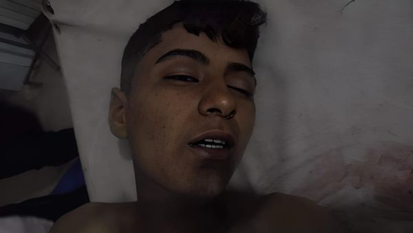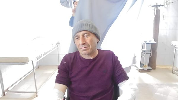 Facebook account “Afrini displaced” shared the images of the two victims. One image showed the face of the deceased young man, Ali Abdul Rahman Muhammad, lying on a white cloth stained with blood. Another image showed the injured Muhammad Khaled in a hospital – a man in his 40s wearing a maroon-colored T-shirt and a gray hat, with both of his arms in plaster.