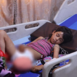 Hawar News also posted a video of the victims in the hospital. A small boy Abdullah was seen lying on a hospital bed with an amputated leg. A correspondent talked to his mother, a middle-aged woman with her leg in plaster, and she shared the circumstances of her injury: “My name is Zaila Jamil Ali, I was sitting in my tent and the bombing started. I looked for protection and moved to our neighbor’s tent but the bombing hit us. I don’t know where my elder boy left and the other daughters but my kid Abdullah stuck with me. I was injured and couldn’t move my leg as well as my son in his leg…. We started bleeding for twenty minutes till the village people arrived and transferred us to this hospital.”