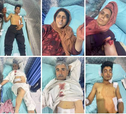 Hawar News shared the images of some of the injured civilians – a middle-aged woman wearing a wine-red flowery dress and a brown head scarf lying on a hospital bed with her arm connected to an IV; a boy in black trousers with his arm stained with blood also connected to an IV; a young man dressed in a gray long-sleeved sport shirt lying on a hospital bed. Kurd-Online News added some additional images of the injuries – an elderly man with multiple stomach wounds and a middle-aged woman with an arm injury.