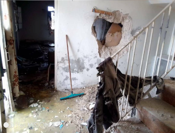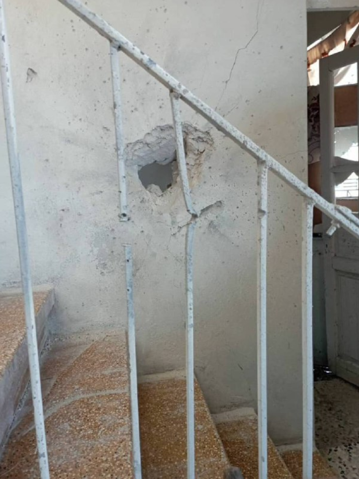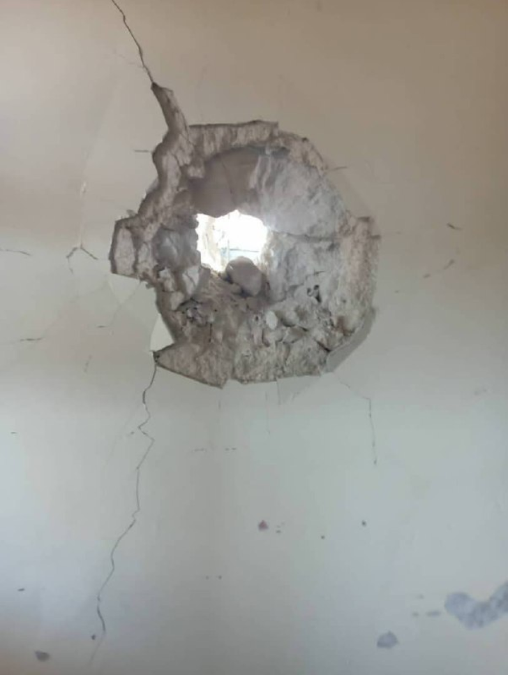 Roj Ali News additionally posted an image of fragments of an artillery shell. Der Jamal News posted a photo of a hole through a wall in a house.