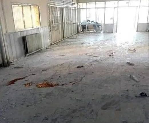 The report on the incident by the Syrian Observatory for Human Rights contained an image of the internal premises of the dormitory where the pavement was covered with traces of blood.