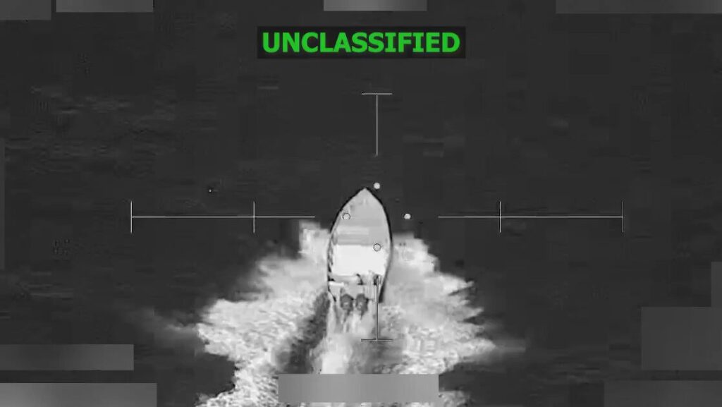 This strike was announced as one of two strikes on vessels in a statement published by @Southcom on Twitter/X on December 18th announcing the strikes on two vessels that were allegedly “transiting along known narco-trafficking routes in the Eastern Pacific and were engaged in narco-trafficking operations.” The second strike on December 18th has been assessed separately in USMAR251218b. In a black and white video included in the post, a boat can be seen moving through the water until it erupts into what appear to be flames and smoke, and can be seen in flames from a different view. A second video shows a boat moving through the water until explosions engulf the boat in flames.