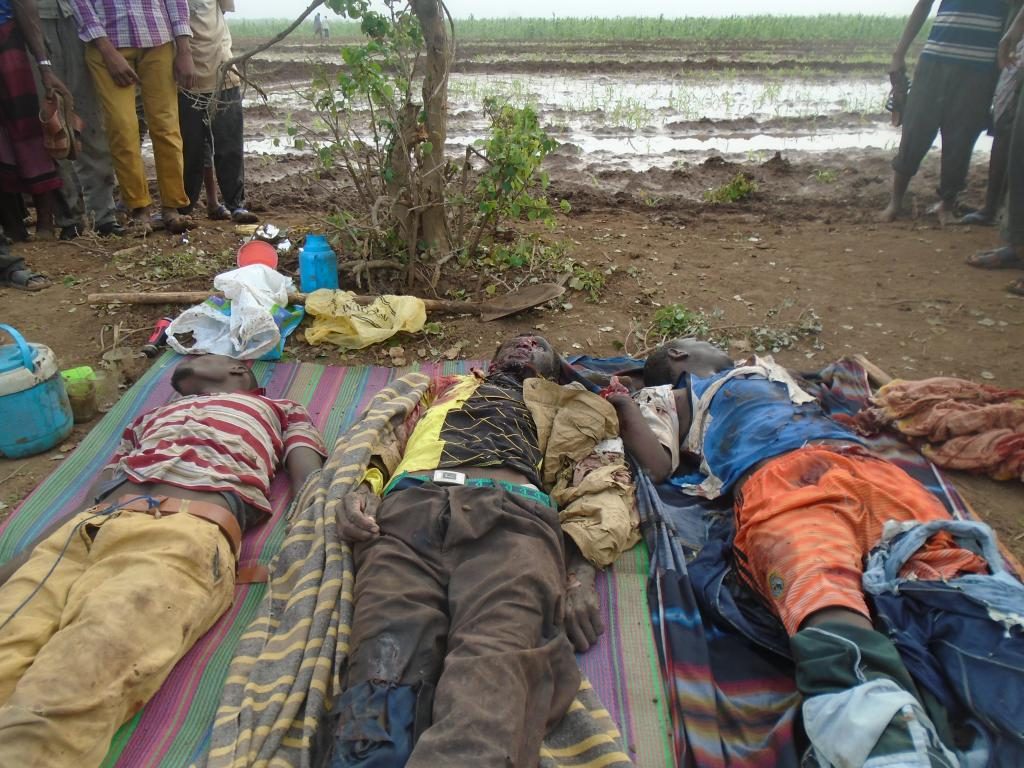SomaliMemo published graphic photographs later that day which it said were of three farmers (though Amnesty later said the bodies had been moved and staged by al Shabaab.)