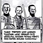 “The weeks before it used to come and leave, only that night it was not leaving. It was coming and coming and coming… when the noise [of an airstrike] happened everything ceased…I was so frightened. I couldn’t keep watch on the farm at all. I went under the shelter of the tree and hid…These three young men were not expecting to be killed by a plane, and we did not expect the world to be silent.”
