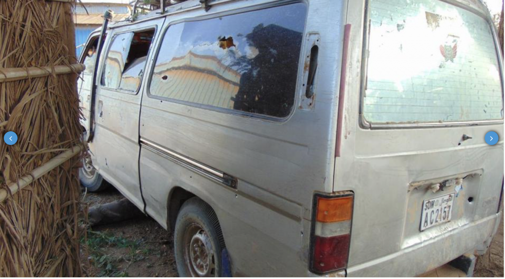 “The attack happened during a joint U.S.-Somali forces’ military operation against the Al-Qaeda-linked extremist group, Al-Shabab in the area, according to a resident, speaking to Garowe Online by phone. Other reports said residential houses and shops were also hit during the bombing. Graphic Pictures taken at the scene after the strike and seen by Garowe Online showed a bullet-riddled Nissan Homy packed with vegetables and chicken on the top as well as destroyed shopping centers,” asserted Garowe.
