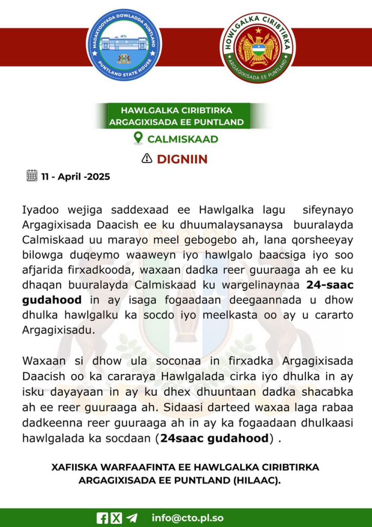 Prior to the strike occurring, @PL_CTOperations, the X account for the Puntland counterterrorism forces, issued a warning to local nomadic communities in the Calmiskaad Mountains that “Major operations & airstrikes targeting fleeing #ISIS terrorists to begin soon.” On April 14th, @PL_CTOperations reposted their original warning announcing that “An airstrike in the #Mirale Valley area killed members of the #ISIS terrorists. The strike was carried out by the United States (@USAfricaCommand ).”