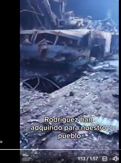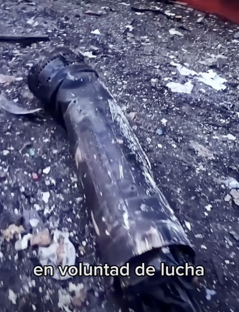The governor of La Guaira State, Venezuela @josealejandro.teran posted on his Instagram a video of him walking through an area covered in the burnt remains of different objects, which he identified as the medical supplies warehouse in Puerto La Guaira. In the video he emphasized the impact of the bombing on kidney dialysis patients. Munitions remnants identified by Airwars’ partners at the Open Source Munitions Portal identified fragments of likely Venezuelan surface-to-air missiles, meaning that damage may have occurred from exploding Venezuelan munitions either following or in conjunction with the original strike.