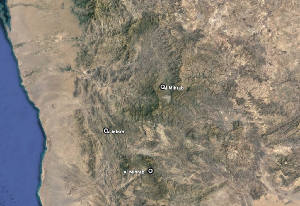 Reports of the incident mention the village of Al Mirab or Al Mihrab. Due to limited information available, we were unable to verify the coordinates, as several villages have the same or a similar name. There are three possible villages the reports are referring to. Their coordinates are: 13.73732, 43.72378; 14.04897, 44.13587 or 13.45457, 44.04858. The coordinates for a mid point between these villages are: 13.710239, 44.056858.