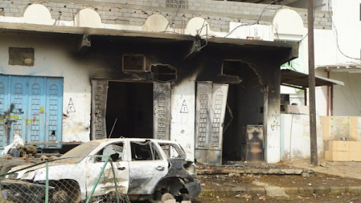 @YusraAIA later clarified to note that shops near the mosque were burned and damaged and two civilians were killed and four wounded by shrapnel because of the strike, while also tweeting that “7 citizens were killed”, in addition to reporting that two militants and “a number of innocent citizens’ were killed. According to @NoonArabia, “2 citizens instantly killed in bus passing by mosque while bombarded”.