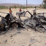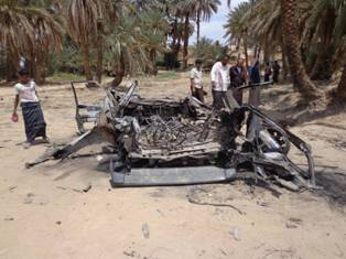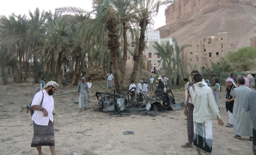 Five people were reported killed, according to initial reports, and the defense ministry said three militants were killed in the strike. Witnesses said a US drone fired on a car with at least one hitting the target, and a local source identified the vehicle as a Suzuki Vitara that was “heading on a secondary road linking the Akkad area with the village of Khashamir.” Local residents pulled “charred bodies” from the wreckage that were “badly mangled by the airstrike“. There was “a huge explosion” that rocked the area, one local resident said, adding that military aircraft remained hovering “over several Al Qaeda-held sites in Hadramout’s suburbs.”