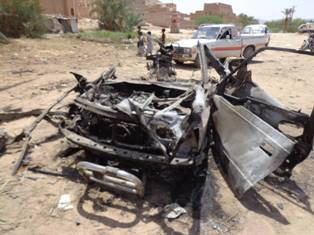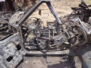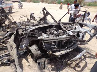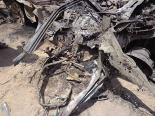 RW provided similar details that a black Suzuki Vitara sports utility vehicle with three men inside came to Salim’s house multiple times on the day of August 29, with Salim finally meeting with them in the evening when the drone strikes hit. Faisal Jaber, the brother-in-law of Salim Jaber and the uncle of Walid Jaber told HRW that “The first two missiles hit the circle of men directly. When the men heard it they all ran toward the spot where it landed. Then the second missile struck and shrapnel flew over their heads. The third missile came from an angle and took off the roof of the car and hit them again. The fourth missile took a bit of time. Maybe they were checking to see if they were still alive. They [villagers] saw a man crawling and the fourth missile hit that man and his body was thrown 20 meters or more, onto the wall of a sheep’s manger near the mosque. His body was intact. Only the back of his head was gone.” HRW added that images provided by Faisal show the remains of an ordnance, which they identified as a Hellfire missile.