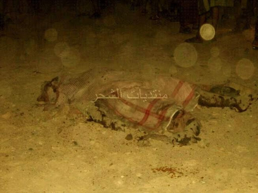 Between three and five Al Qaeda militants who were riding the motorbikes and carrying pistols were also killed in the incident. Reuters provided the lowest estimate with three killed, while Long War Journal, citing AFP, claimed that four were killed. Xinhua, and Global Times claimed that five killed. Gulf News reported that there was a five additional deaths, bringing the death toll to eight. The information is unclear as Gulf News reported that one militant was injured on the scene and later passed away at the hospital whereas Xinhua reported that all five died on the scene. “The bodies of the dead were charred, and some of them were torn into pieces” which indicated that there could have been confusion as to the identities of those killed. A local official speaking to Gulf News was quoted saying “Four of the people died at the scene and the fifth suffered heavy injuries and died later on in hospital. We do not know whether they are members of Al Qaeda or not. Shiher residents suspect that there are outsiders,” said the official who asked not to be named”.
