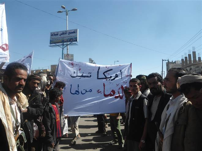 The elderly mother of one victim said: “Whatever we do, they will never look at us as human beings… We end up with wounds they cannot see.” The surviving relatives escalated their protest against the government by blocking a main road to the capital, Sanaa, and demanding an end to US raids.