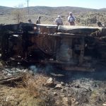 Hussein Ahmed Saleh Abu Bakr speaking to Mwatana provided his account as well. Hussein said: “The distance between our car and their car was about 20 to 30 meters. While we were chatting about work and its problems, we suddenly heard two explosions, one after another, and there were two aircrafts above us. The car behind us was struck. Shrapnel hit the rear tires of our car and it stopped.” He and three other friends took shelter in a culvert but when he returned after a few minutes he saw that his father Ahmad Saleh Bobak Al-Khashm had been killed by shrapnel that hit his chest and head. Another witness from a nearby village corroborated Hussein’s account. From his house he saw two small aircrafts with long wings circling the area. One was white and the other grey. Other residents from neighbouring villages confirmed that they recognised occupants of the Hilux car in which Salem Nasser Al-Kashm and other labourers were traveling. Abdullah Abdu Rabu Al-Khasm, speaking to Yemen Times, said that he did not recognise the passengers in the Land Cruiser ghost vehicle and “We saw the flags of Al-Qaeda on their car prior to the strike”. The pictures show that the Toyota Land Cruiser was hit and overturned, while the Hilux carrying the workers was burnt. A local journalist from al-Baydha told Gulf News that Al-Qaeda affiliates came to the scene four hours after the strike, collected the torn bodies of their comrades into plastic bags and buried them.
