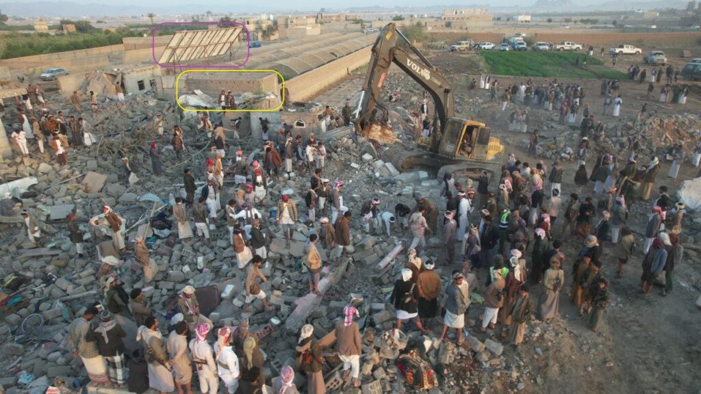 Videos posted by sources Walid Al-Maljami, Ihtekam all sharabi, Nour Al-Huda Ahmed, and Alhadath al yamani have not been archived within this incident as they have been identified as videos relating to different events in Yemen from previous air campaigns.