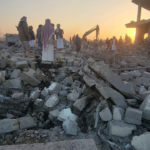 Abulfatah Masoudi wished condolences to their neighbors of the Ruqa’a family for the death of “5 women and 7 children, 2 children are still missing and 5 children were injured”. The message from Abulfatah went on to wish for a speedy recovery for those injured, and patience for those who lost family members, along with an image of the rubble and excavator from another angle.
