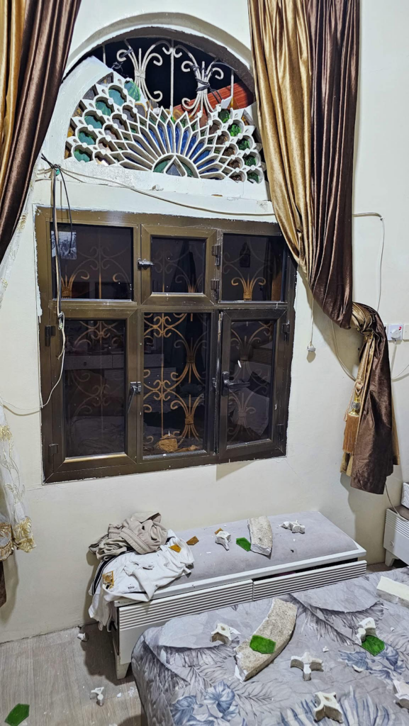 The video from @ShahidAlmasirah showed the wide-reaching effects of the bombing, with the windows of many residential and commercial buildings shattered.