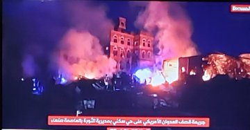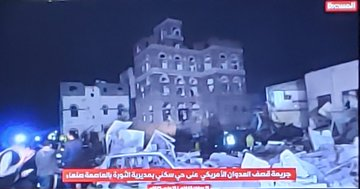 Houthi-affiliated news @TvAlmasirah reported on the “US aggression’s bombing of a residential neighborhood in Al-Thawra District in the capital, Sana’a, injuring 7 women and two children, in addition to damaging a number of homes.” An accompanying video showed a multi-story building which sustained damage to windows and various floors, situated next to the smoldering ruins of a burning building and car. Civil defense workers are seen trying to put out the flames. Images also posted by @TvAlmasirah included two young girls with visible injuries.