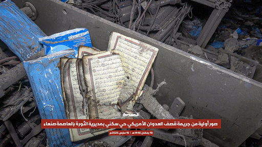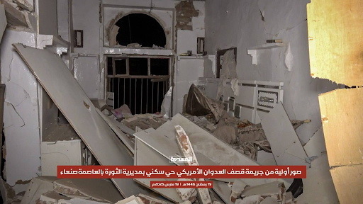 According to a report published by Mwatana for Human Rights, a Yemeni human rights organisation, US fighter jets carried out “two airstrikes targeting a wedding hall in the Al-Hashoush neighborhood of Al-Jiraf area in Shu’ub District, north of the capital Sana’a.” The organisation specified that the strikes injured three women and a young girl who were in homes in the vicinity of the hall. Mwatana added that the strikes also destroyed “nearby mask manufacturing facility, in addition to causing extensive damage to surrounding houses.”